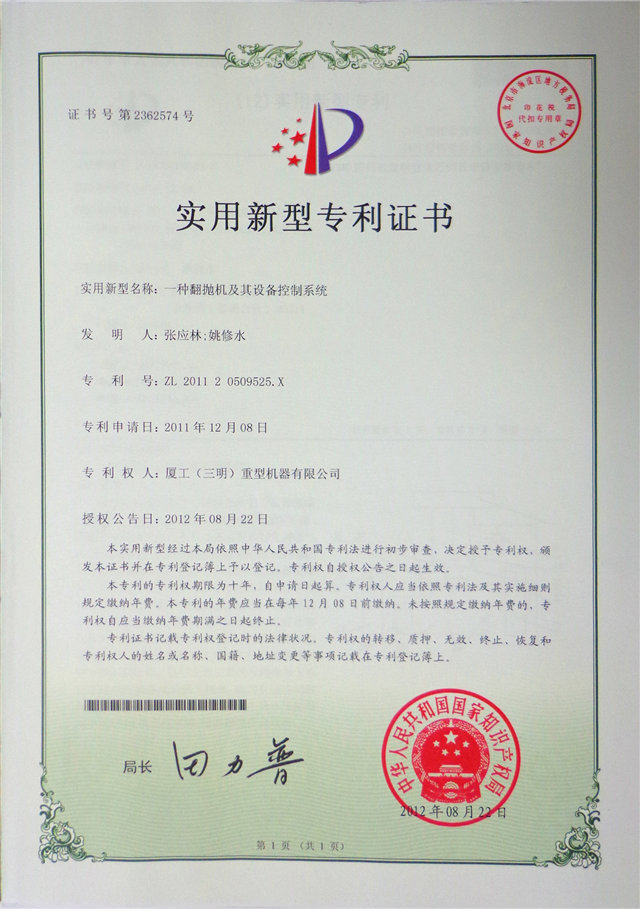 一種翻拋機(jī)及其設(shè)備控制系統(tǒng)ZL2011 2 0509525